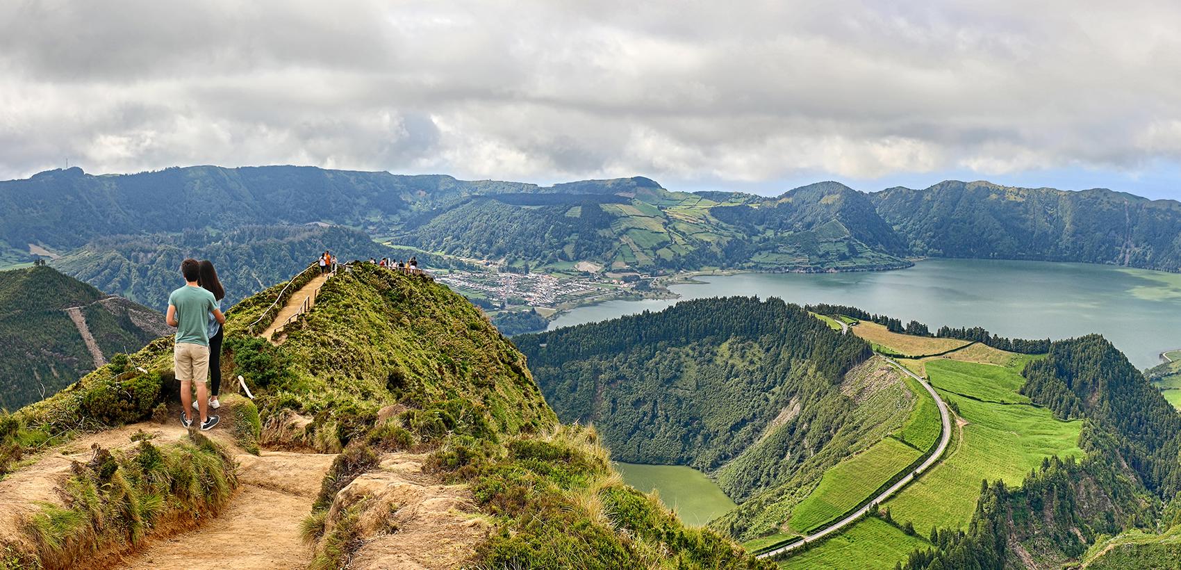 O Vulcão das Sete Cidades deu origem a duas lagoas que vivem lado a lado, uma azul e outra verde. Localizada na zona mais ocidental da ilha, esta é uma das Sete Maravilhas Naturais de Portugal, e pode ser vista, em toda a sua grandiosidade, do Miradouro da Vista do Rei, assim chamado em homenagem à presença do Rei D. Carlos e da Rainha D. Amélia, em 1901. Outro ponto de interesse é a zona das Furnas, com as suas fumarolas, mas também águas quentes e medicinais, procuradas para tratamentos. Recomenda-se que se aprecie os diferentes paladares das águas minerais, que brotam naturalmente e se oferecem em inúmeras fontes naturais.